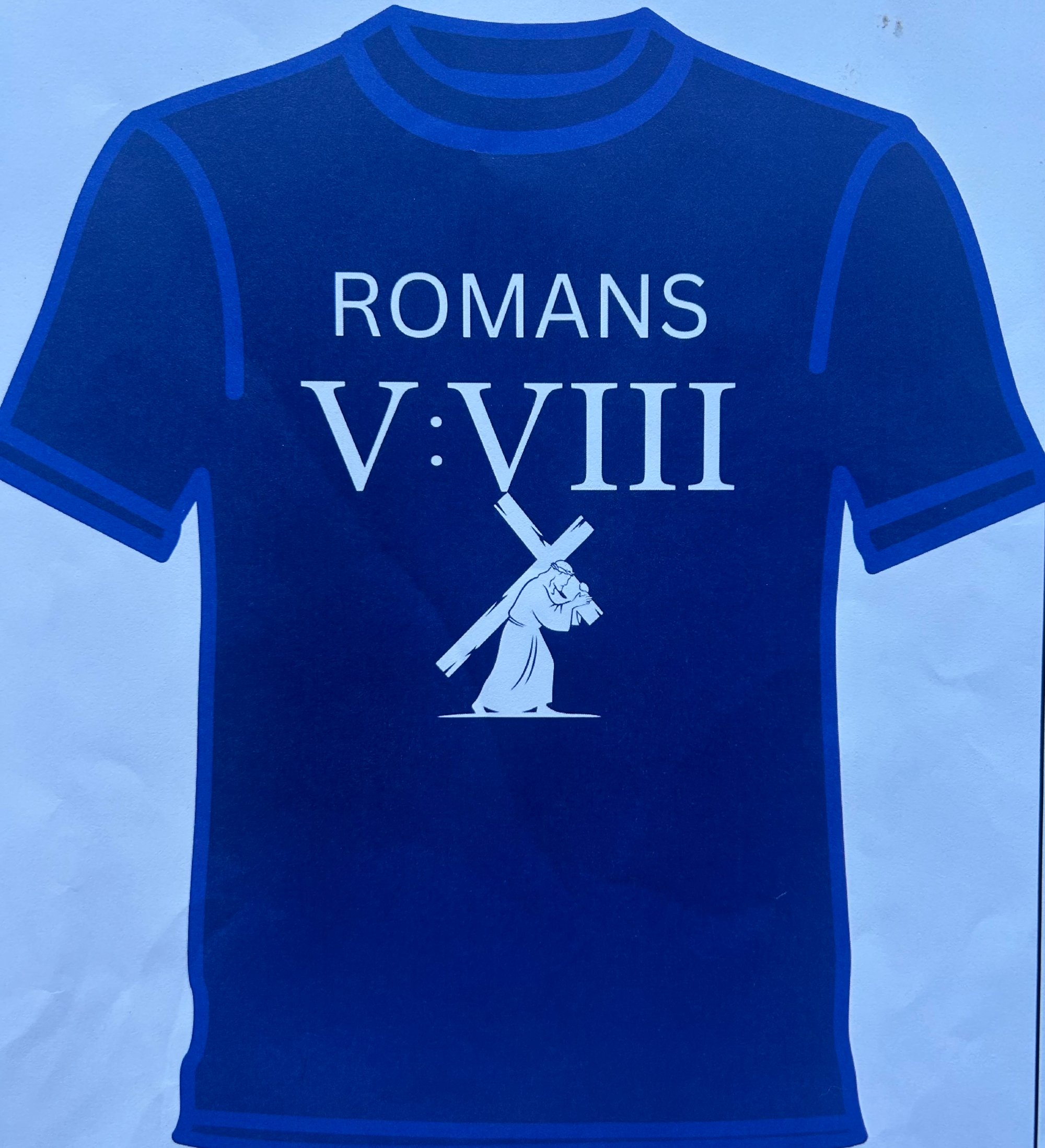 Short Sleeve and Long Sleeve shirts with the Romans 5:8 Logo back design and ACA logo on the front. Color Options include: Royal Blue or Black.